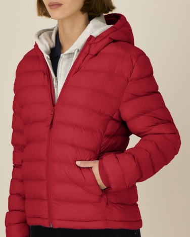 Stójka z zintegrowanym kapturem Odwrócony zamek nylonowy na środku przodu Wszywane rękawy Kieszenie z wypustkami zapinane na zamek z uchwytami z rypsu Elastyczne mankiety z tego samego materiału Panele boczne dla lepszego dopasowania Regulowany otwór kaptura i dół z elastycznym sznurkiem i plastikowymi stoperami W pełni watowana Wszystkie szwy wewnętrzne wykończone lamówką z recyklingu